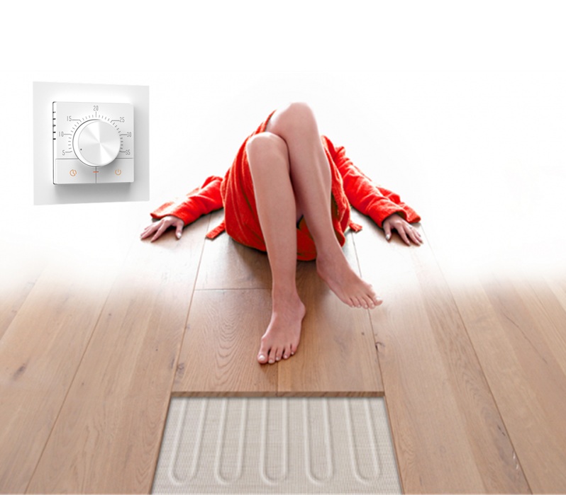 Folosesc covor aluminiu pentru confort sporit intr-o camera unde am si calorifer. Am parchet stratificat de 11 mm, si dupa 3-4 minute deja incepe sa se simta caldura. Termostatul e ok, dar avand si alta sursa de caldura in camera poti sa setezi termostatul in functie de temperatura pardoselei.